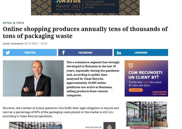 The e-commerce segment has strongly developed in Romania in the last 10 years, especially during the pandemic and, according to public data analyzed by Clean Recycle, approximately 10,000 online platforms are active in Romania, selling products from various categories.